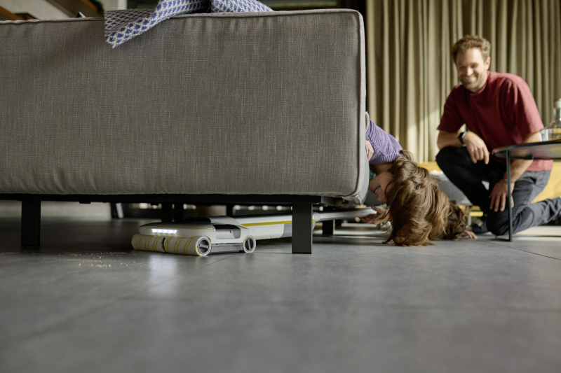 • Na napravi so prednastavljeni pogosto potrebni načini čiščenja: dva načina čiščenja z različnimi količinami vode in hitrostmi valjev ter funkcija pospeševanja za trdovratno umazanijo. S povezavo aplikacije: prenos velikega števila dodatnih načinov čiščenja v napravo, optimiziranih za različne vrste tal, kot tudi konfiguracija lastnih individualnih načinov čiščenja. Primerno za vse trde talne obloge – vključno s parketom, laminatom, kamnom in keramičnimi ploščicami, PVC-jem in vinilom.