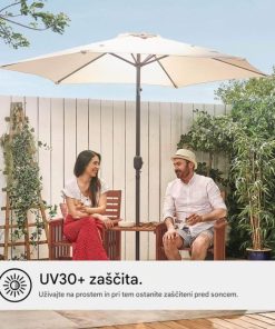 S premerom 2.7m, sončnik ponuja veliko senco in je primeren za namestitev nad mizo na terasi ali kje drugje.